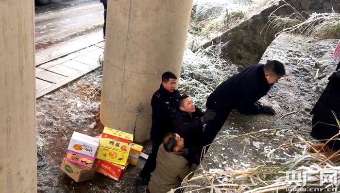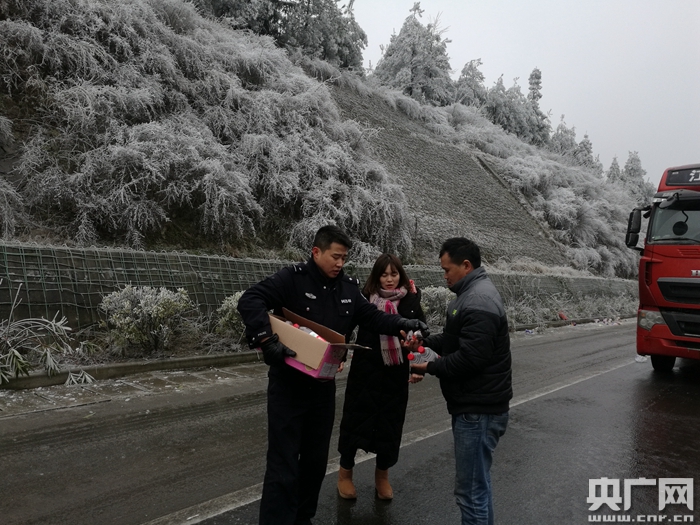 央廣網(wǎng)貴陽(yáng)2月1日消息(記者孟海 烏當(dāng)臺(tái)韓雪 王強(qiáng))連日來,貴州大部遭遇強(qiáng)冷空氣襲擊,貴陽(yáng)多條道路結(jié)冰實(shí)行交通管制,大量人車滯留在高速公路上。一場(chǎng)場(chǎng)艱苦的救援,就在漫天雨雪中拉開大幕。貴陽(yáng)市烏當(dāng)區(qū)百宜鎮(zhèn)就上演了一幕幕讓人溫暖的、令人感動(dòng)的警察故事。