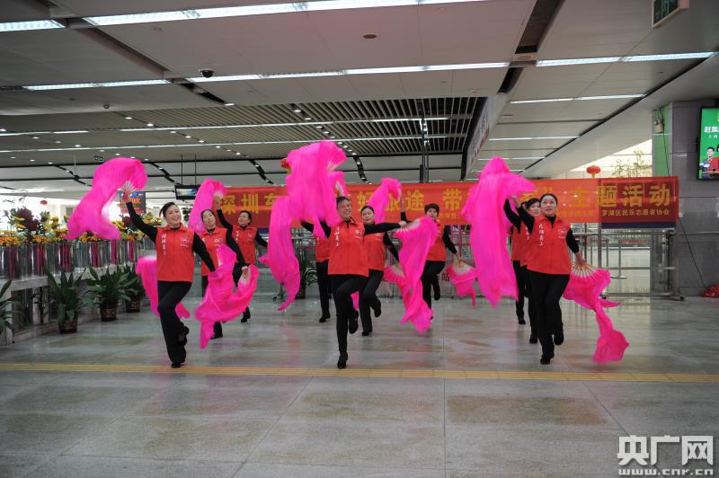 央廣網(wǎng)深圳2月9日消息(記者李強(qiáng) 通訊員王香瑞 陳小牒)2月8日,是春運(yùn)第8天,正值中國(guó)傳統(tǒng)佳節(jié)小年。深圳艷陽(yáng)高照,春風(fēng)送暖。為了讓旅客出行體驗(yàn)更加美好,深圳車(chē)站會(huì)同廣鐵集團(tuán)文聯(lián)、“紅木棉”青年志愿者、街道辦義工為旅客送上了一場(chǎng)“美好旅途,帶;丶摇敝黝}活動(dòng),不僅讓旅客提前感受到濃厚的年味,還為寒冬出行的旅客帶來(lái)了溫暖和快樂(lè)。