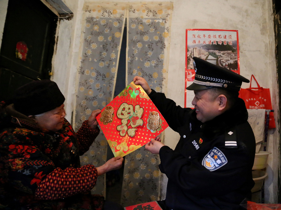 央廣網(wǎng)西安2月13日消息(記者雷愷 通訊員楊長空 郝黎。爸炖希⒆觽兌伎旎貋砹税桑狂R上過年了,我也過來看看您!薄靶》,你看你,來就來唄,還帶這么多東西,快進(jìn)屋坐。”都說大山里年味濃,臨近年關(guān)深山“走親戚”是巴山小站駐站民警范雪艷到大巴山五年來一直堅(jiān)持的習(xí)慣。
