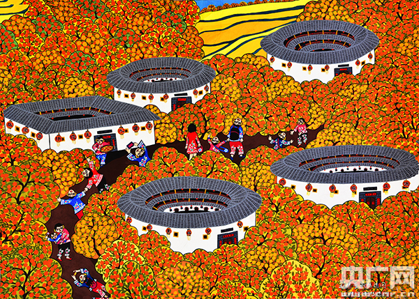 特級(jí)作品收藏《土樓金秋桔滿園》 福建省漳平市湯藝萍(央廣網(wǎng)發(fā) 主辦方供圖)