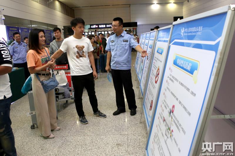 在人流如織的潮汕機場進出境大廳,汕頭海關(guān)關(guān)警員和地方公安禁毒支隊的禁毒宣傳員們手拿禁毒宣傳品給旅客送上一份“綠色無毒、健康人生”的溫馨關(guān)愛,教育引導(dǎo)廣大旅客充分認(rèn)識毒品的危害,提高識毒、拒毒、防毒的意識和能力,活動現(xiàn)場向旅客發(fā)放了禁毒宣傳手冊400余份。