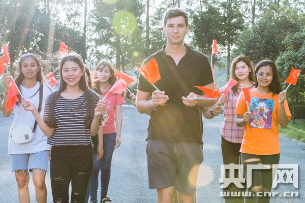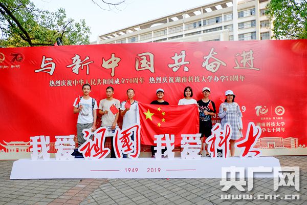 湖南科大學(xué)生與國旗合照 為新中國慶生(央廣網(wǎng)發(fā) 盧權(quán)隆 董思良供圖)