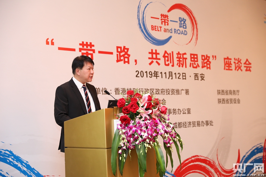 央廣網(wǎng)西安11月13日消息(記者溫超)由香港特別行政區(qū)政府投資推廣署、陜西省商務(wù)廳、陜西省人民政府港澳事務(wù)辦公室、陜西省工商業(yè)聯(lián)合會(huì)和中國(guó)國(guó)際貿(mào)易促進(jìn)委員會(huì)陜西省委員會(huì)聯(lián)合主辦的“一帶一路,共創(chuàng)新思路”座談會(huì)12日在陜西西安舉行。香港特別行政區(qū)政府投資推廣署助理署長(zhǎng)鄧智良,香港特別行政區(qū)政府駐成都經(jīng)濟(jì)貿(mào)易辦事處主任李蘊(yùn)妍,與陜西省商務(wù)廳副廳長(zhǎng)唐宇剛參會(huì)并致辭。