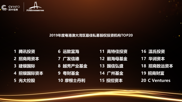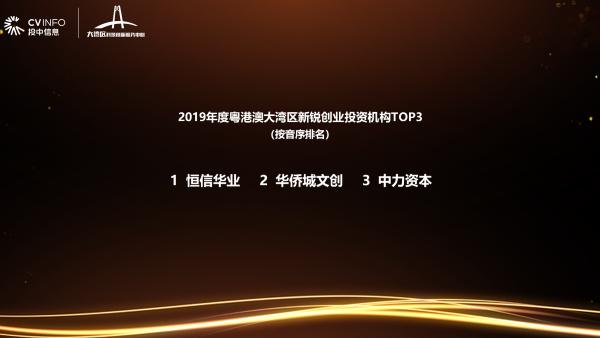 大會現(xiàn)場發(fā)布了“2019年度粵港澳大灣區(qū)最佳創(chuàng)業(yè)投資機構(gòu)榜單”“粵港澳大灣區(qū)最具潛力科創(chuàng)企業(yè)榜”。本次榜單共揭曉“2019年度粵港澳大灣區(qū)最佳創(chuàng)業(yè)投資機構(gòu)”“2019年度粵港澳大灣區(qū)最佳私募股權(quán)投資機構(gòu)”“2019年度粵港澳大灣區(qū)最佳早期創(chuàng)業(yè)投資機構(gòu)”“2019年度粵港澳大灣區(qū)最佳天使投資人”“2019年度粵港澳大灣區(qū)新銳創(chuàng)業(yè)投資機構(gòu)”“2019年度粵港澳大灣區(qū)最佳政府引導基金”六大獎項。