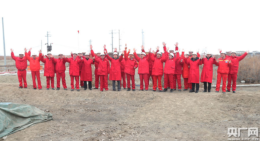 輪探1井獲重大發(fā)現(xiàn)后,鉆探一線的干部員工歡呼鼓舞(陳士兵 攝)