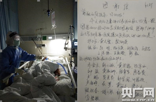 同是骨科護士的楊云英,收到了一封來自出院患者的感謝信;颊咴谛胖姓鎿吹貙懙溃骸拔覀冏≡浩陂g派來援助的護士們,非常優(yōu)秀,他們無微不至的關心,貼心的祝福,讓我們增強了戰(zhàn)勝病毒的信心。”