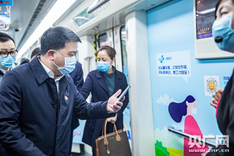活動(dòng)嘉賓在“安心復(fù)工專列”上體驗(yàn)掃碼領(lǐng)防疫包(央廣網(wǎng)發(fā) 主辦方供圖)