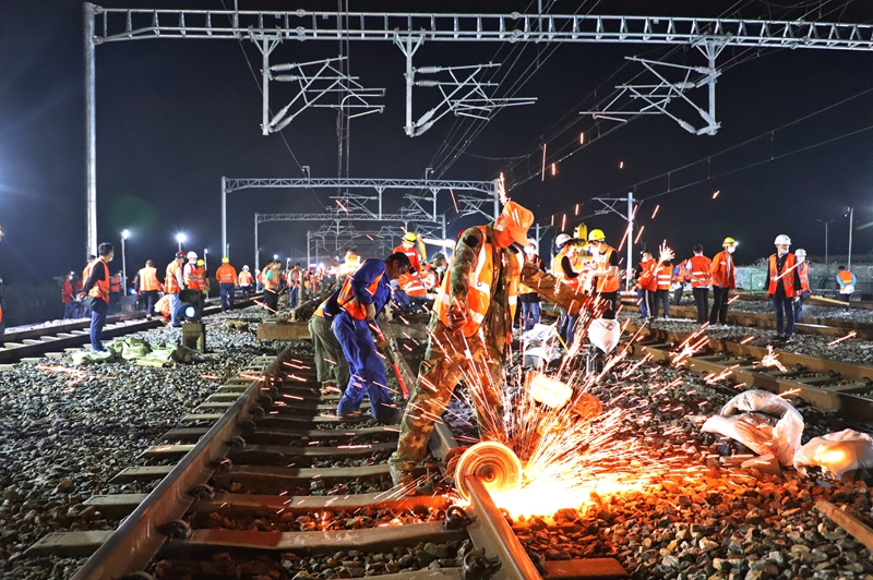 此次施工涉及道岔插鋪、大機搗固、信號軟件換裝、接觸網(wǎng)改造、站型升級等多種專業(yè)施工,參與施工人數(shù)600余人,存在施工時間緊、工程復(fù)雜、作業(yè)面狹小、拆換工序交叉、道岔縱橫推移距離長等特點。施工中,各單位和部門密切協(xié)同配合,確保施工環(huán)節(jié)的全過程控制,分工到組、責(zé)任到崗、精確到點,實現(xiàn)安全正點目標(biāo)。該站改施工預(yù)計5月底完工。