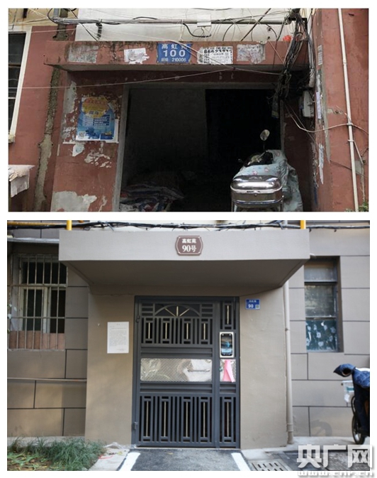 單元門改造前后對比(央廣網(wǎng)發(fā) 秦淮區(qū)住房保障和房產(chǎn)局供圖)