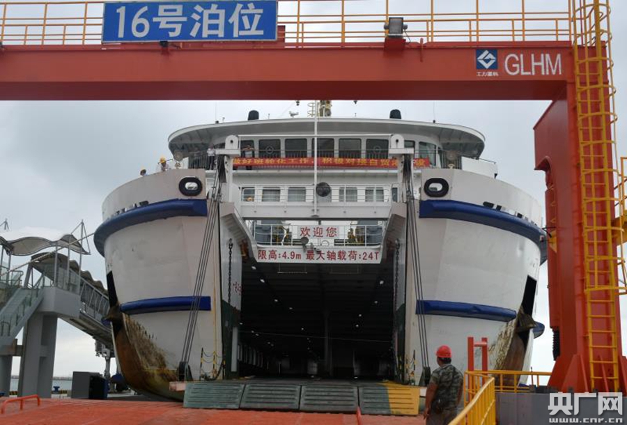 湛江海事助力全球最大客滾輪渡碼頭完成船舶試靠(央廣網(wǎng)發(fā) 湛江海事局供圖)