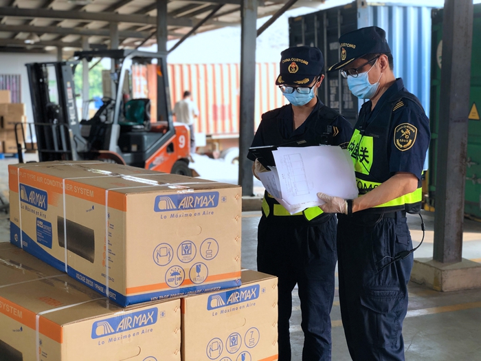 在中山保稅物流中心物流園區(qū),1081臺中山制造的空氣加濕器在海關(guān)關(guān)員的監(jiān)管下,啟運發(fā)往美國。
