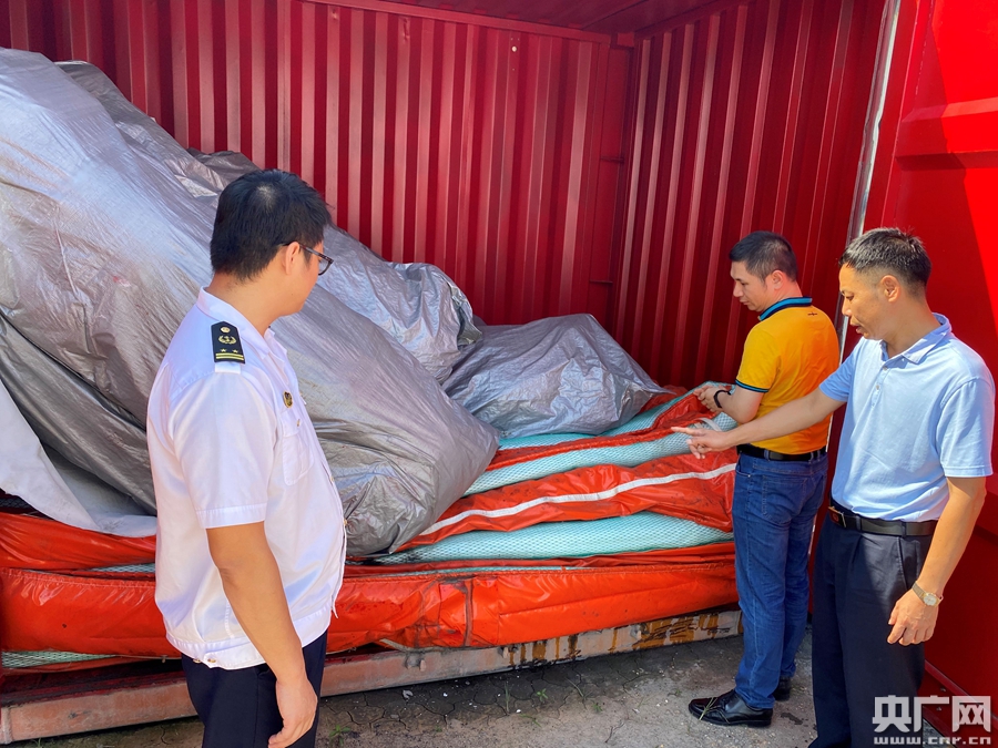 執(zhí)法人員檢查溢油應急設備庫(央廣網(wǎng)發(fā) 肇慶海事局供圖)