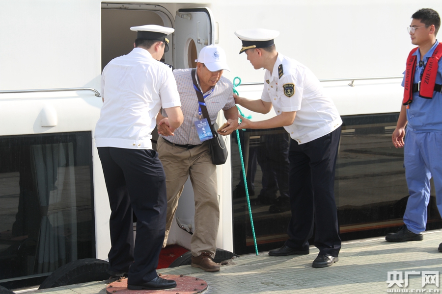 引導珠江片區(qū)“中國航海日”考察嘉賓下船(央廣網(wǎng)發(fā) 肇慶海事局供圖)