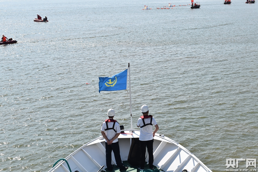 執(zhí)法人員現(xiàn)場維護“橫渡西江”活動秩序(央廣網(wǎng)發(fā) 肇慶海事局供圖)