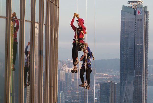 央廣網(wǎng)珠海11月20日消息(記者何偉奇)11月20日下午,“珠澳天際垂直極限挑戰(zhàn)賽”在珠海十字門中央商務(wù)區(qū)開(kāi)啟,來(lái)自中國(guó)的三男一女共四名頂級(jí)極限運(yùn)動(dòng)選手,在330米高的珠海中心大廈和339米高的橫琴國(guó)際商務(wù)中心(橫琴IFC)同時(shí)展開(kāi)競(jìng)速攀爬。經(jīng)過(guò)1個(gè)多小時(shí)的激烈比拼,最終來(lái)自廣西的方賢獲得南塔冠軍;趙飛獲得北塔冠軍。首次“珠澳天際垂直極限挑戰(zhàn)賽”的世界紀(jì)錄由方賢和趙飛共同創(chuàng)造。