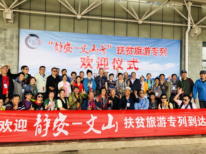 2020年跨省游政策放開后全國(guó)首趟鐵路扶貧旅游專列“靜安-文山號(hào)”成功開行(央廣網(wǎng)發(fā) 靜安新聞辦供圖)
