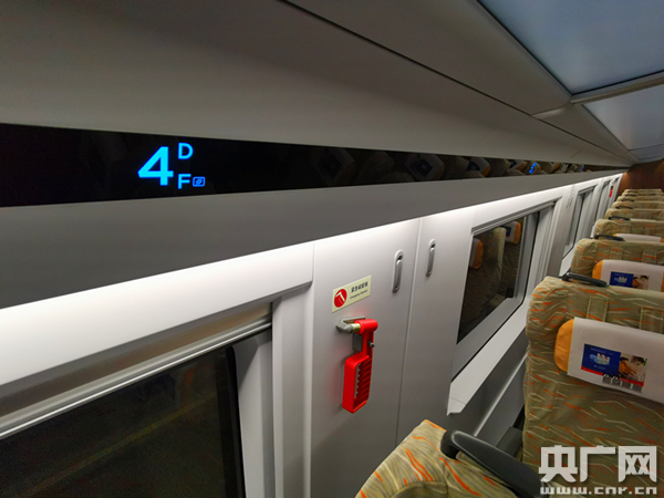CR300BF型“復(fù)興號”動車組全列采用8輛編組,總定員613人,其中一等座48個席位,二等座565個席位。每節(jié)車廂內(nèi)設(shè)置了4個溫度傳感器,對車內(nèi)溫度的感應(yīng)更敏感,智能空調(diào)系統(tǒng)讓車內(nèi)溫度更適宜。行李架過道邊緣增加250個座位顯示器,方便旅客查找核對本人座席。每節(jié)車廂內(nèi)設(shè)置半球攝像機、通道區(qū)域設(shè)置全景攝像機,可對車廂內(nèi)區(qū)域進(jìn)行實時監(jiān)控。電茶爐采用先進(jìn)的電磁式加熱方式,實現(xiàn)加熱元件和水分離,并具備安全童鎖功能,防止兒童燙傷。車內(nèi)增加車載無線系統(tǒng),每節(jié)車廂兩端增加2個WIFI天線,為旅客上網(wǎng)、刷劇提供便利條件。