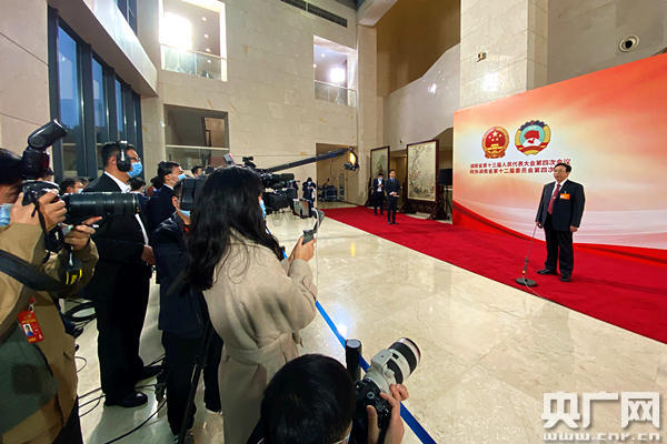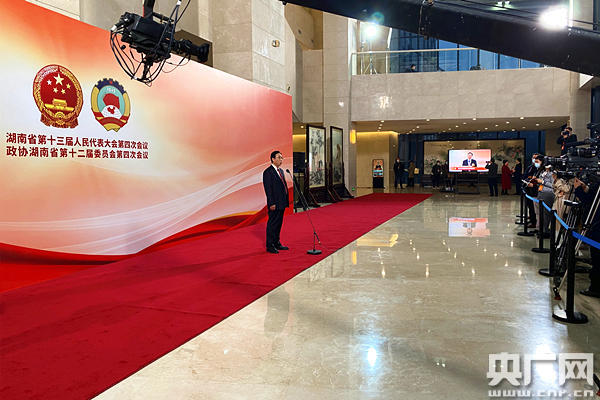 湖南省十三屆人大四次會議第二場“廳長通道”集體采訪活動現(xiàn)場(央廣網(wǎng)記者 堯遙 攝)