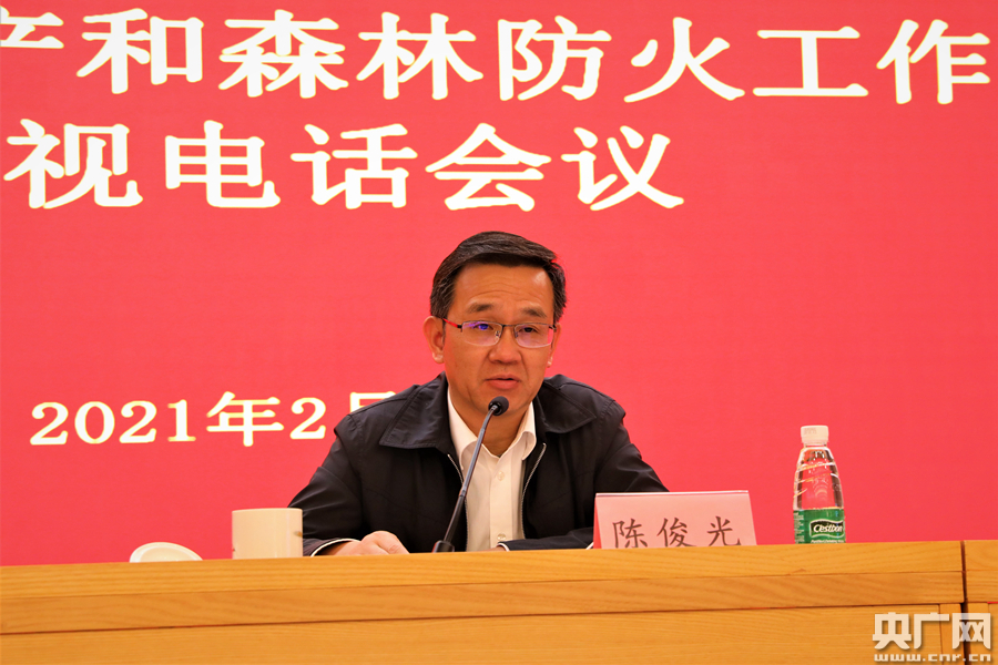 △廣東省林業(yè)局局長陳俊光在2021年春節(jié)期間全省林業(yè)系統(tǒng)安全生產(chǎn)和森林防火工作電視電話會議上講話(央廣網(wǎng)發(fā) 通訊員供圖)