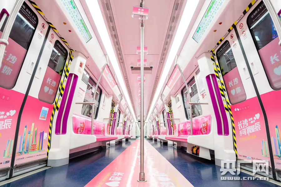 網(wǎng)友們發(fā)現(xiàn)“長(zhǎng)沙整座城市都是粉粉噠”:長(zhǎng)沙地鐵3、4、5號(hào)線都推出了各自的粉紅專列,地鐵4號(hào)線的座椅還被刷成了粉紅色,地鐵的語(yǔ)音播報(bào)還做了特別定制。長(zhǎng)沙的38路公交車推出了粉紅專車,隨處可見(jiàn)的出租車頂燈也變成了粉紅色,并播放“長(zhǎng)沙手可摘星辰”等字樣。