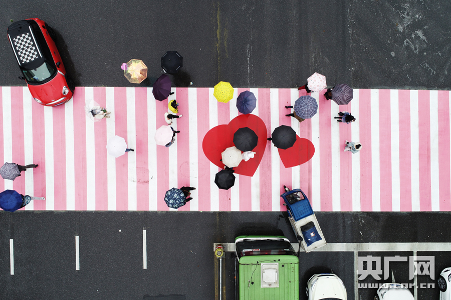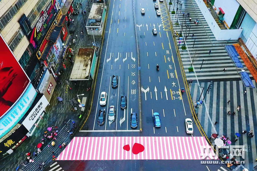 央廣網(wǎng)長(zhǎng)沙3月8日消息(記者傅蕾) 3月8日一大早,長(zhǎng)沙司門口附近早起的市民發(fā)現(xiàn),解放西路上的斑馬線變成了粉紅色。路人紛紛拍下圖片和短視頻,發(fā)布到抖音、微博,這條十字交叉斑馬線被粉刷成粉紅色和白色相間,并點(diǎn)綴著紅色愛(ài)心。