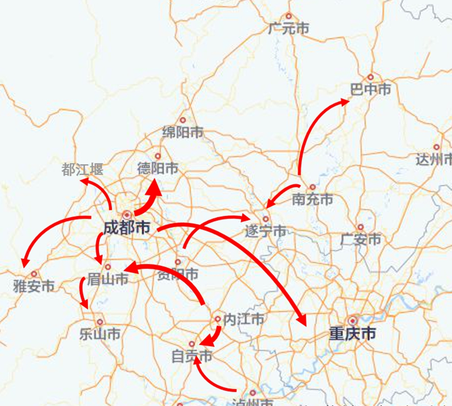 從分布來看,路網(wǎng)流量圍繞成都等中心城市呈放射狀分布,成都市周邊各主線站以及連通主線站的環(huán)線高速車流量最為密集,發(fā)生擁堵的可能性較大。成綿、成綿復(fù)線、成自瀘、成雅、成德南、成渝等高速預(yù)計迎來高出行流量,遂渝、渝蓉高速將承受較大進(jìn)出川流量壓力。