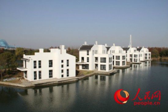 記者來到位于南京三橋旁邊的水利公園,在公園靠湖的位置,這五棟白色建筑格外顯眼,建筑主體已完工,外墻涂刷完畢,只是內(nèi)部還未裝修。建筑旁還建有一個網(wǎng)球場,粗略估計這五棟建筑面積在2000平米左右。附近一名村民介紹,這些建筑在2013年6月建成后便一直停工。在建筑的大門口,記者看到門頭上赫然寫著“老碼頭文化產(chǎn)業(yè)園”的字樣,大門被木板封住,外人無法進入。