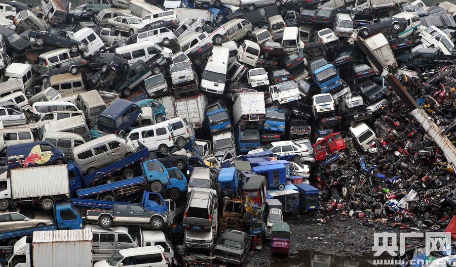 2015年03月19日,浙江省杭州市,在杭州記者看到一個(gè)報(bào)廢車墳場(chǎng)。廢舊車輛堆在一起遠(yuǎn)看像一座山,從航拍器俯瞰、場(chǎng)面更加震撼。據(jù)工作人員介紹,所有車輛加起來(lái)數(shù)十萬(wàn)都有了。