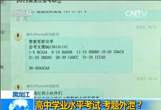 根據(jù)教育部相關(guān)文件,考試期間通過手機(jī)等通訊設(shè)備傳輸答案要受到嚴(yán)厲處罰;相關(guān)部門也稱此次考試采取了嚴(yán)格措施。那么在上千人的幾個QQ群里瘋傳的,真是這次黑龍江普通高中學(xué)業(yè)水平考試的試題和答案嗎?