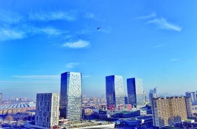 今天天氣晴好,記者在通州北苑附近看到,天空一片蔚藍(lán) 攝/記者 劉暢