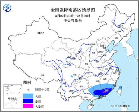 中央氣象臺(tái)3月22日18時(shí)繼續(xù)發(fā)布暴雨藍(lán)色預(yù)警: