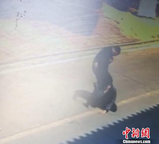 現(xiàn)場(chǎng)監(jiān)控視頻顯示,事發(fā)時(shí)保安坐在停車(chē)場(chǎng)入口處的一把椅子上,一名男子徑直向其走來(lái),揪住保安的衣領(lǐng)后揮拳擊打其頭部,連續(xù)猛擊數(shù)十拳,間或以膝部撞擊受害人面部。