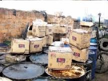 兩名男子在南明區(qū)永樂(lè)鄉(xiāng)非法開(kāi)設(shè)地溝油初加工小作坊,每天將大量潲水進(jìn)行加工提煉,隨后運(yùn)到湖北某廠家,進(jìn)行二次加工提煉,將生產(chǎn)出來(lái)的地溝油銷到市場(chǎng)。發(fā)現(xiàn)情況后,南明區(qū)工商和質(zhì)監(jiān)部門立即組織執(zhí)法人員前往事發(fā)地,永樂(lè)派出所則在第一時(shí)間增援警力趕到。