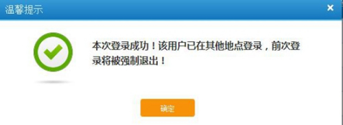 記者再次登錄,成功后提示同一用戶名在其他地點登陸。