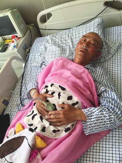 被打保安段師傅躺在病床上。