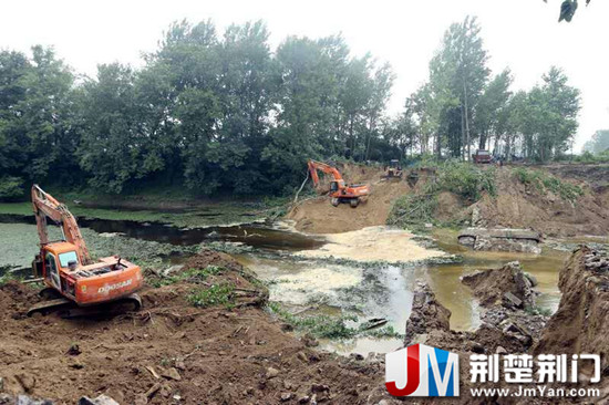 交通部門組織施工隊(duì)利用挖掘機(jī)對(duì)河水進(jìn)行斷流