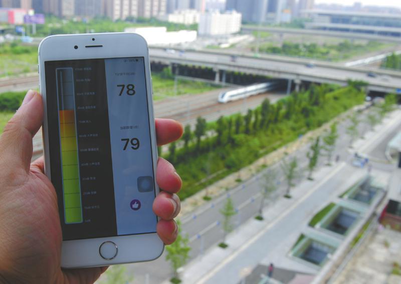 記者實(shí)地測(cè)試,列車?guó)Q笛經(jīng)過(guò)時(shí),附近居民樓室內(nèi)瞬時(shí)噪音指數(shù)達(dá)到79分貝。