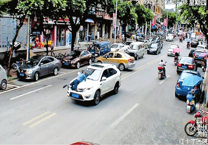 一輛白色的比亞迪轎車,載著一車乘客在市區(qū)橫沖直撞,并以時(shí)速50公里左右的速度,將一名執(zhí)法人員撞上引擎蓋,推行了300多米。緊接著,該轎車來了一個(gè)急轉(zhuǎn)彎,把執(zhí)法人員甩下地面后繼續(xù)逃跑……7月7日,電影中的“速度與激情”,在達(dá)州市大竹縣城真實(shí)上演。