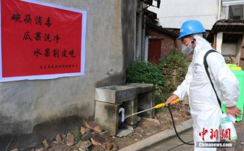 9月30日,救援人員在浙江麗水遂昌山體滑坡災(zāi)區(qū)進行消毒。中新社記者 何蔣勇 攝