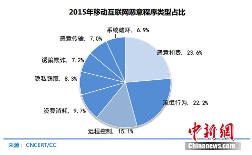 2015年移動(dòng)互聯(lián)網(wǎng)惡意程序類型占比。
