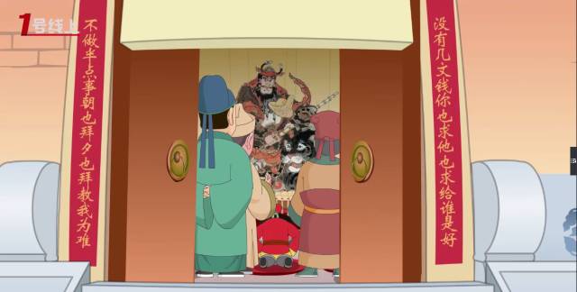 《六月說過年》也是我們擔當傳承和教育使命的一次嘗試,動畫中出現(xiàn)的眾多春聯(lián)、對聯(lián)都是我們精心挑選的,其中絕大部分都是傳統(tǒng)常見的經(jīng)典春聯(lián),也有個別的屬于詼諧幽默,不見得有多么經(jīng)典,但也能看出民間的許多智慧。比如財神廟門上的對聯(lián)“沒有幾文錢你也求他也求給誰是好,不做半點事朝也拜夕也拜教我為難”,看完讓人忍俊不禁,細思量幾成真理:與其坐等賜福難為財神,不如擼起袖子實干興邦。求神不如求己!類似的還有灶神旁的對聯(lián)“上天言好事,回宮降吉祥”和古戲臺上的對聯(lián)“欲知世上觀臺上,不識今人看古人”,寥寥數(shù)字就把敬神的內(nèi)涵和看戲的本質(zhì)說清楚了,真是神來之筆。