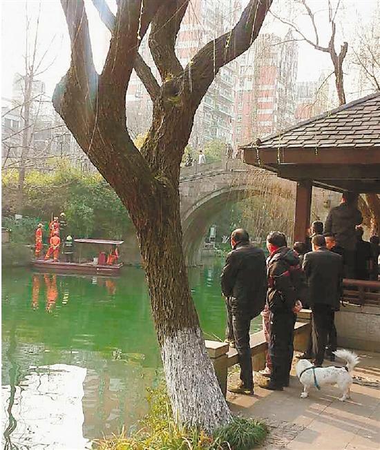 案發(fā)現(xiàn)場:橋上和岸邊站滿了圍觀群眾。