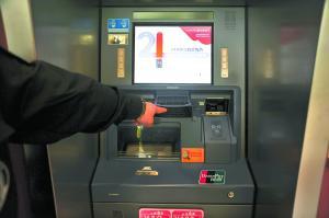 經(jīng)過一番調試,這個灰色裝置被固定在了密碼鍵盤上方的凹槽處。之后該男子又從口袋里掏出了一個更大的黑色塑料裝置,并迅速地安置在銀行卡插口處。安裝完畢后,中年男子拿出一張銀行卡,準備模擬普通客戶,檢驗和測試剛剛裝好的裝置的“性能”。