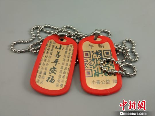圖為小善公益設(shè)計(jì)制作的“小善平安!倍S碼防走失身份牌 小善 攝