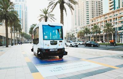 迪拜在市中心試運(yùn)營(yíng)的無(wú)人駕駛客車。