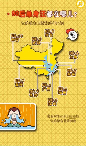 某婚戀平臺曾對8128位90后單身者進行調(diào)查,調(diào)查發(fā)現(xiàn)沿海一二線城市,是90后單身的主要聚集地,在受訪的單身用戶里,生活在廣州的最多,其次是深圳、上海、杭州、北京等。