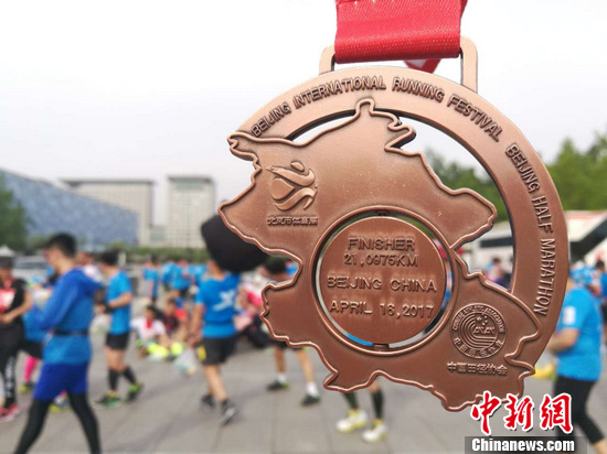 所有完賽選手,都將獲得一枚獎牌。 中新網記者 岳川 攝