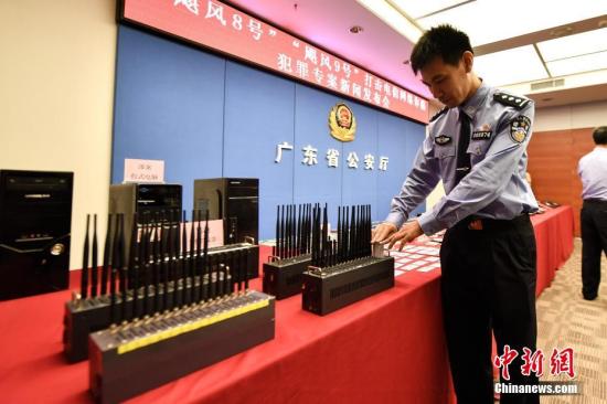 廣東省公安廳通報(bào),廣東省公安廳組織江門、深圳、惠州等地警方赴湖南、福建等省,對(duì)“颶風(fēng)8號(hào)”“颶風(fēng)9號(hào)”兩起特大電信網(wǎng)絡(luò)詐騙專案開展收網(wǎng)行動(dòng),成功摧毀多個(gè)電信網(wǎng)絡(luò)詐騙犯罪團(tuán)伙,凍結(jié)涉案資金近億元。中新社記者 陳驥旻 攝