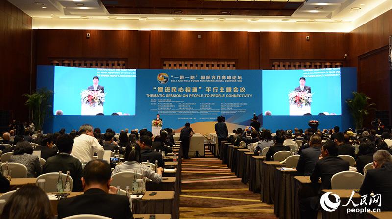 5月14日下午1時(shí)30分許,來(lái)自60多個(gè)國(guó)家的400余名代表在《一帶一路is how》短片歡快的音樂(lè)聲中陸續(xù)進(jìn)入“增進(jìn)民心相通”平行主題會(huì)議會(huì)場(chǎng),共話(huà)“一帶一路”建設(shè),共同架起民心相通的友誼之橋。