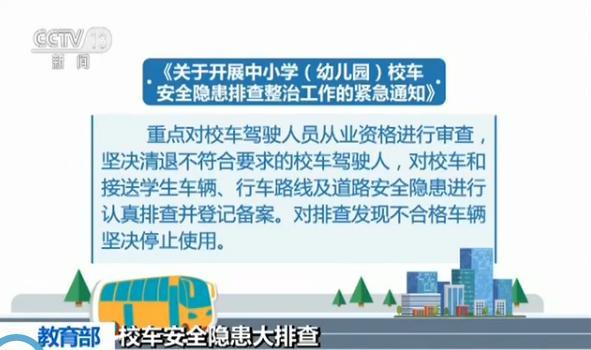 《通知》還指出要進一步加強校車安全風險管控,加大對“黑校車”和幼兒接送車輛的整治力度,依法查處校車超速、超員、不按審核路線行駛等交通違法行為,對違法行為實行“零容忍”。各地應(yīng)結(jié)合排查整治深入開展一次校車安全宣傳教育,曝光接送學生車輛交通違法行為,認真開展事故逃生演練和應(yīng)急處置演練,不斷提高司機、隨車管理人員和乘車學生的安全意識、自救自護技能和應(yīng)急處置能力。